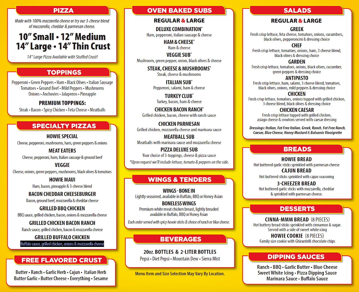 Introducing the Menu at Hungry Howie's Pizza & Subs